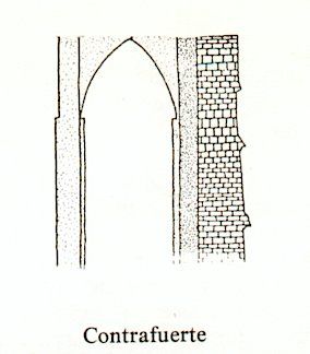 para contener el empuje lateral de la bóveda). Pilares y contrafuertes