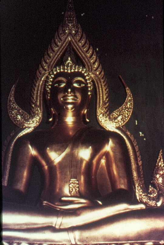 expresión diametralmente opuesta a la pacífica actitud de Buda que