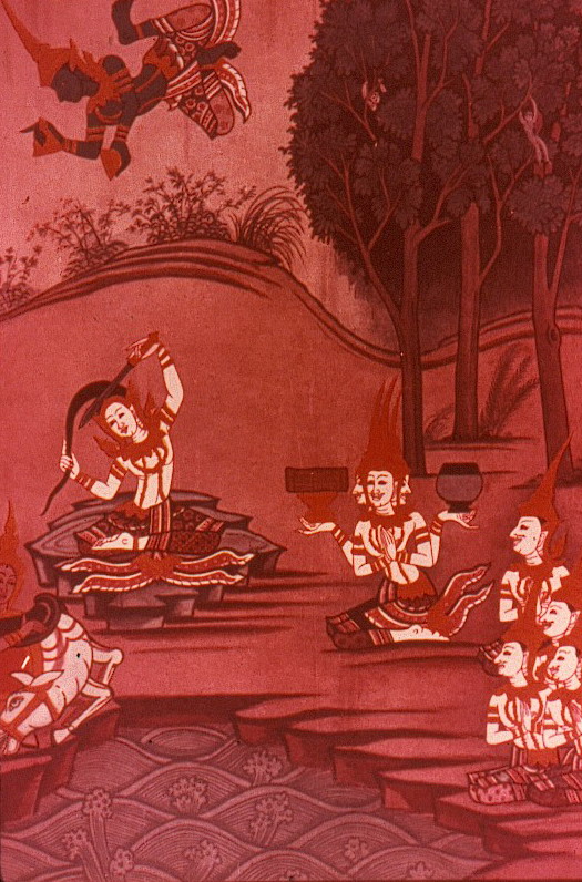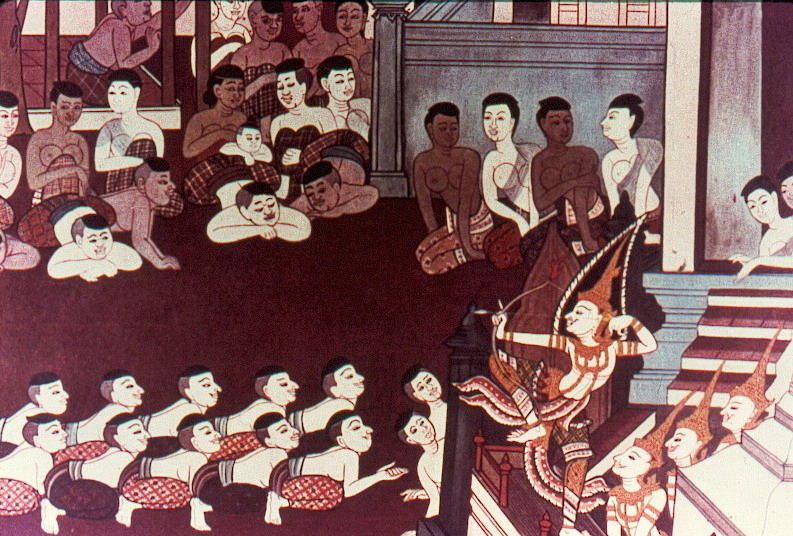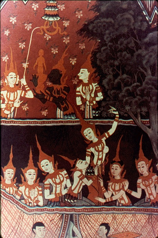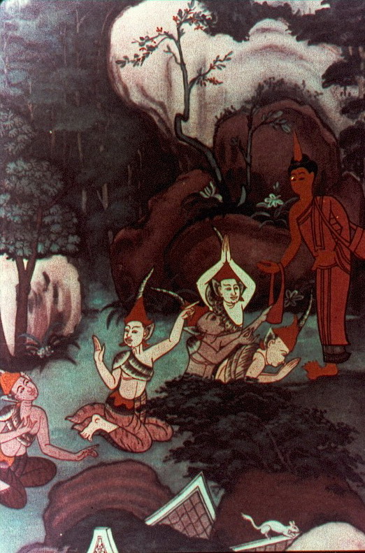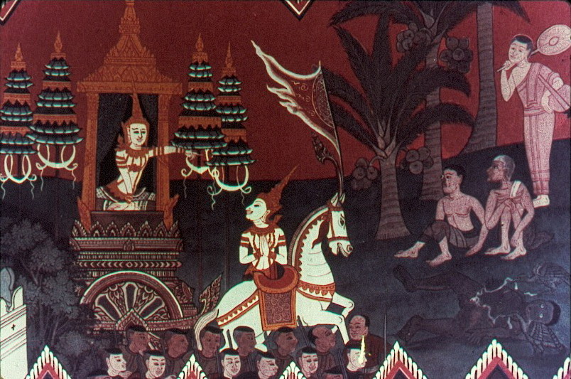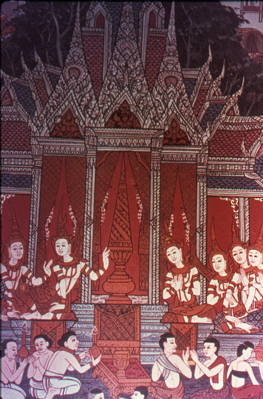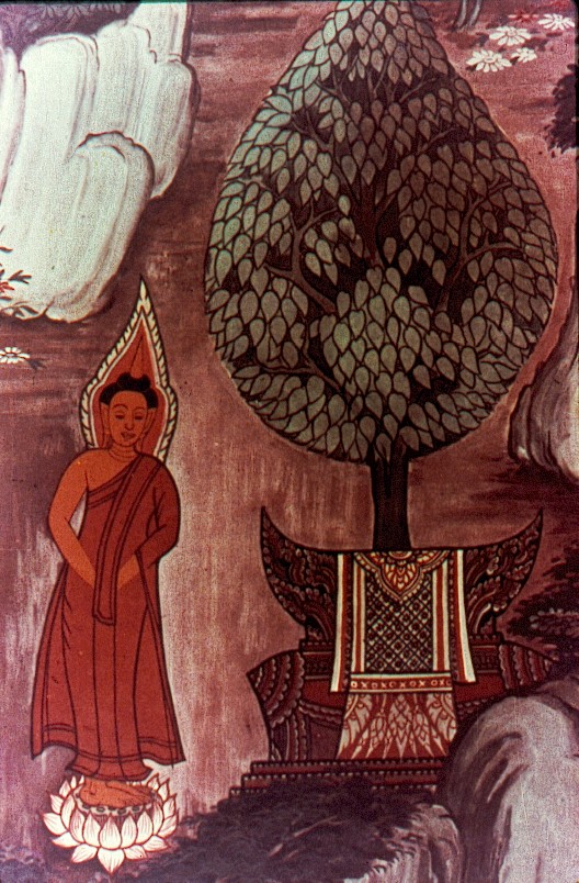 Nacimiento de Buda (pintura en un templo de Tailandia) |