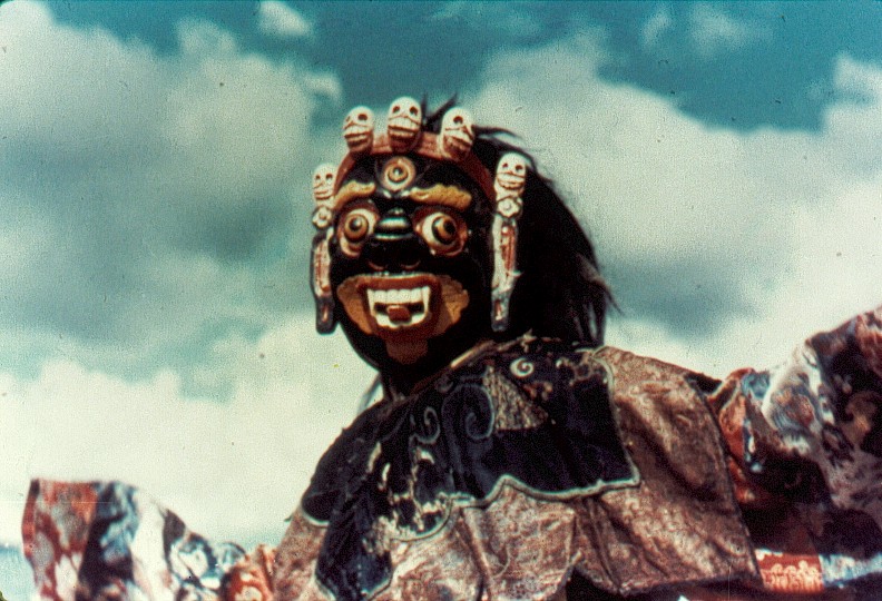 Las mascaras diabólicas en sus danzas rituales intentan ahuyentar el demonio.