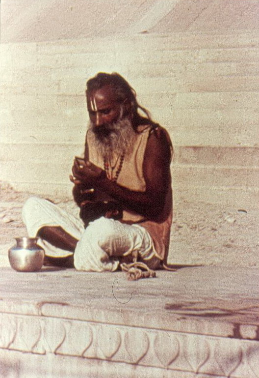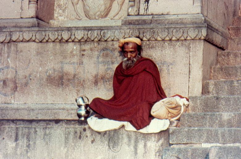 Hindú aposentado junto al Ganges Cuando un hindú piensa que