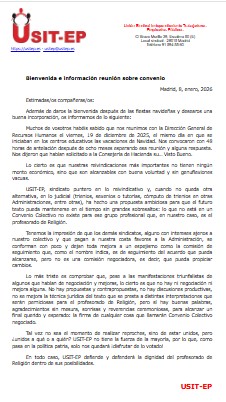 USIT-EP SE DIRIGE AL CONSEJERO DE EDUCACIÓN EN DEFENSA DE QUIENES HAN VISTO REDUCIDAS SUS JORNADAS |